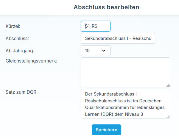Die hinterlegten Abschlüsse stehen später den Klassenlehrkräften bei der Bewertung zur Auswahl und werden anschließend entsprechend auf dem Zeugnis ausgegeben.