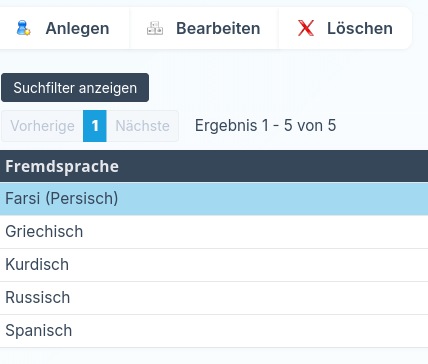 Dieser Bereich ist insbesondere für den Herkunftssprachlichen Unterricht relevant. Hier legen Sie fest, welche Sprachen den Klassenlehrkräften später zur Auswahl stehen.
