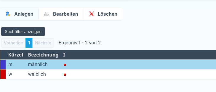 Im Bereich Stammdaten → Geschlechter sind standardmäßig bereits die Geschlechter hinterlegt. Sollte es an Ihrer Schule abweichende Bezeichnungen geben oder sollten Sie individuell anpassbare Geschlechter benötigen, können Sie diese in diesem Bereich zusätzlich anlegen.