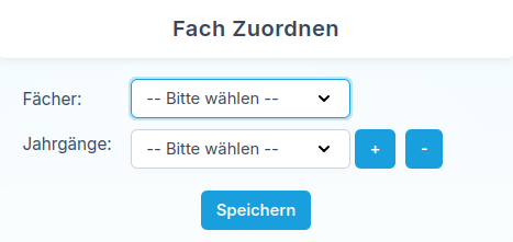 Um eine neue Zuordnung vorzunehmen, klicken Sie auf Zuordnen. Danach wählen Sie das zusätzliche Fach sowie die gewünschten Jahrgänge aus und speichern Ihre Eingabe.