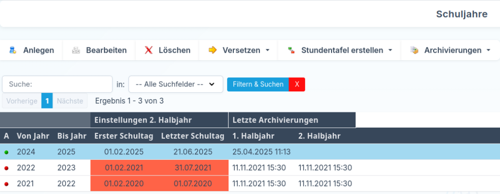 • Anlegen eines Schuljahres: Diese Funktion nutzen Sie nach dem Ende eines Schuljahres und vor dem Einpflegen der neuen Daten.
