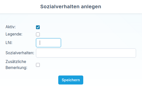 • Sozialverhalten: Im Feld Sozialverhalten können Sie den Text zur Bewertungsstufe eingeben, der ebenfalls in der Legende erscheint.