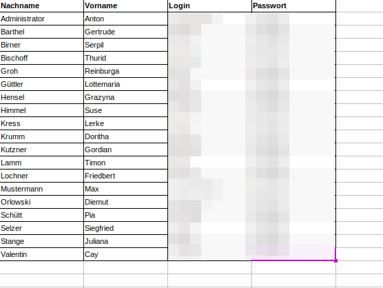 Erscheint anschließend unten ein blauer Link mit der Bezeichnung Benutzerzugänge aufrufen, können Sie darüber eine Excel-Datei herunterladen. Diese enthält alle Login-Informationen der Lehrkräfte, einschließlich des Standardpassworts.